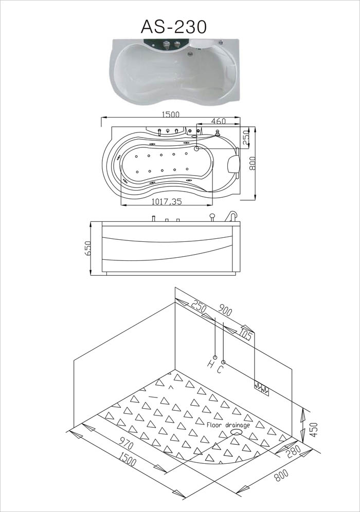 1HP pump Water Inlet Drainage Hydro-Massage System Hand Shower | Air bubble Digital Control FM CD/Telephone Connect Ozone Disinfection Function Underwater Lamp Heater (1.5KW ) |